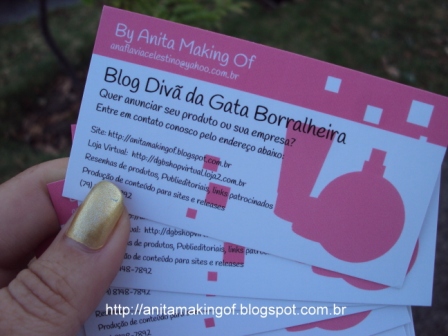Achei o máximo e fechamos uma parceria bem bacana, fui presenteada com 100 cartões de visitas para o blog.
